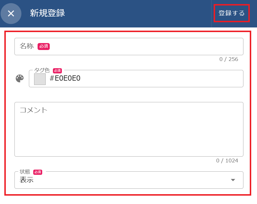 (3)「名称」と「タグ色」を設定し、[登録する]をクリックします。